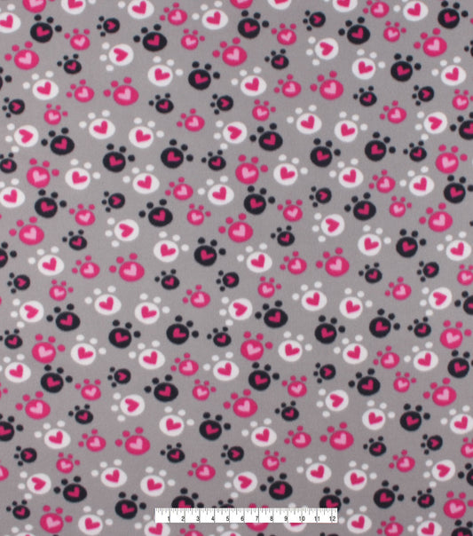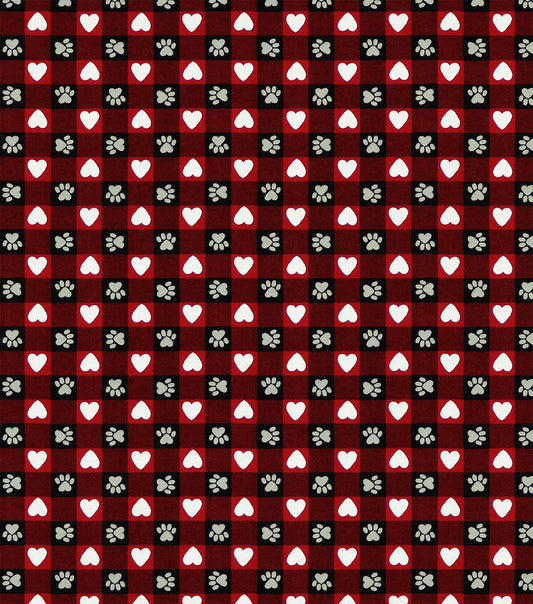 Paws & Hearts on Buffalo Checks Anti Pill Fleece Fabric