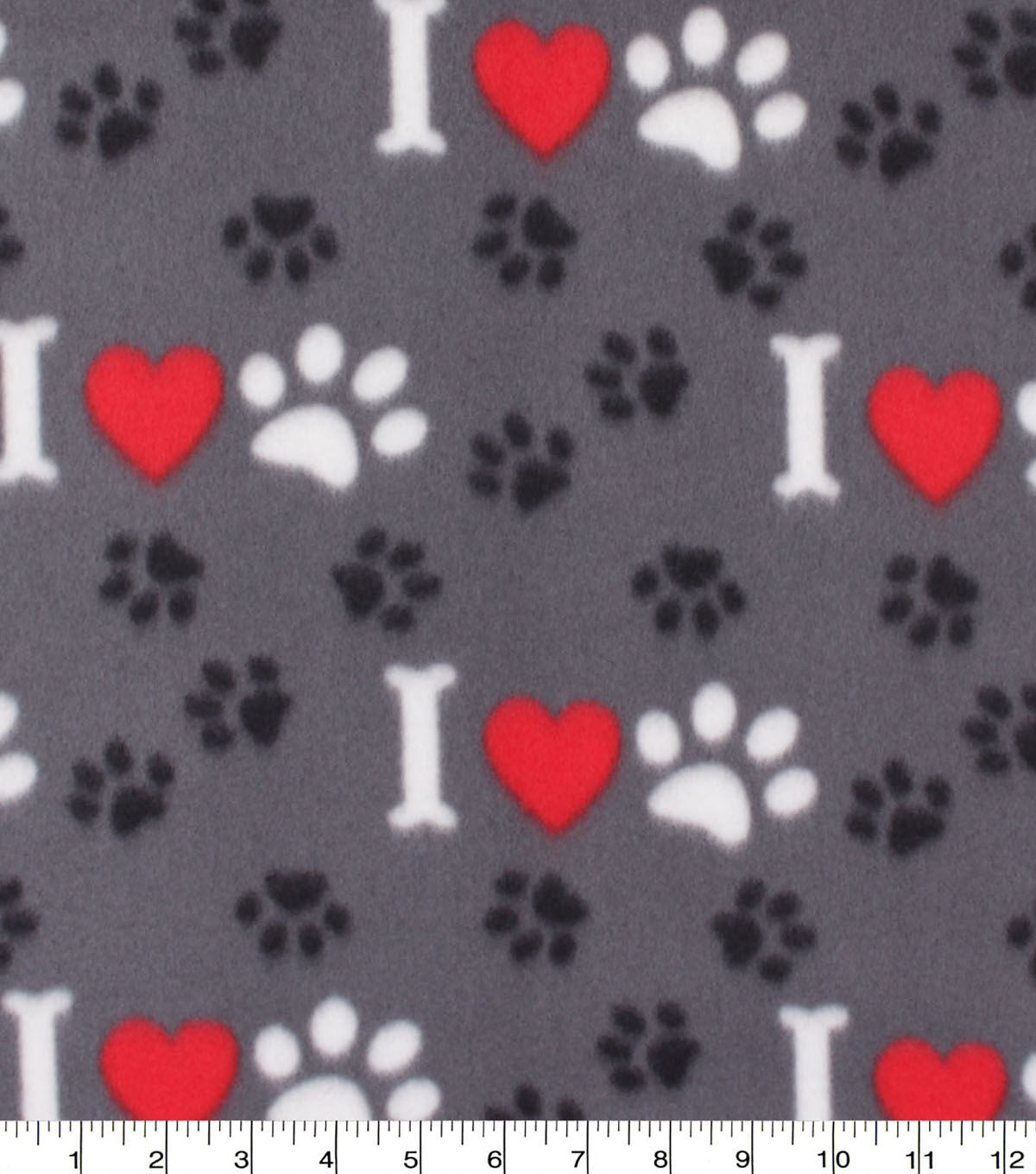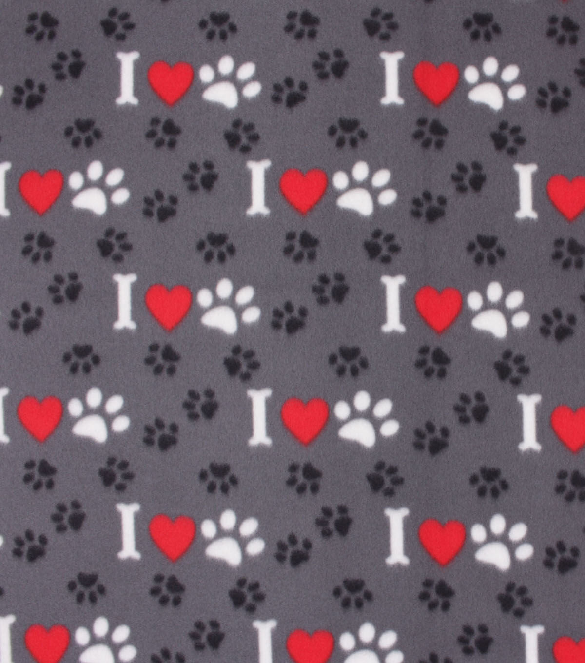 Blizzard Fleece Fabric Bones, Hearts & Paws