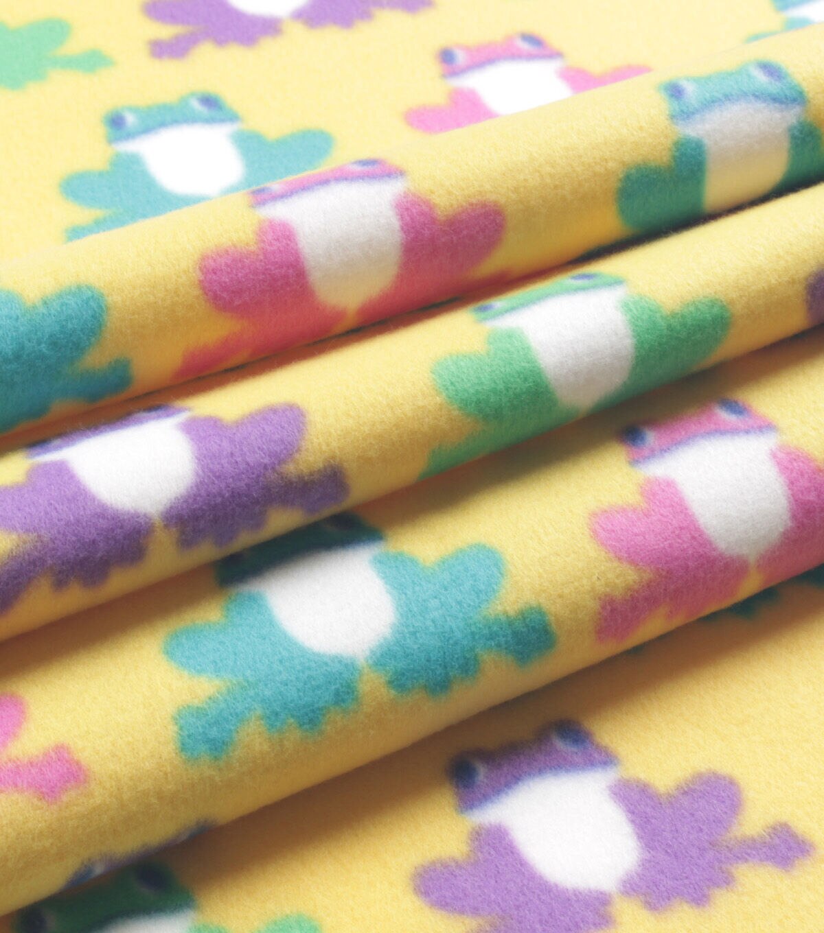 Whether you're a beginner or an experienced crafter, this fabric is perfect for all skill levels. The soft and plush texture will make your projects feel luxurious and inviting. So why wait? Start creating your next masterpiece with our Frogs on Yellow Blizzard Fleece Fabric today!