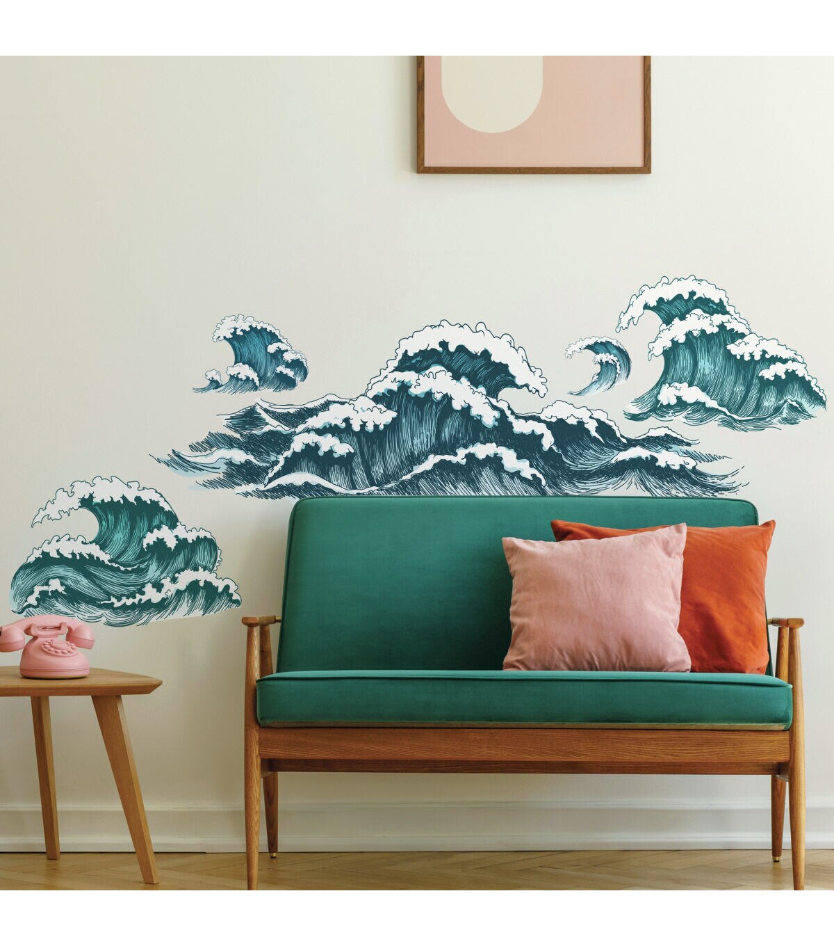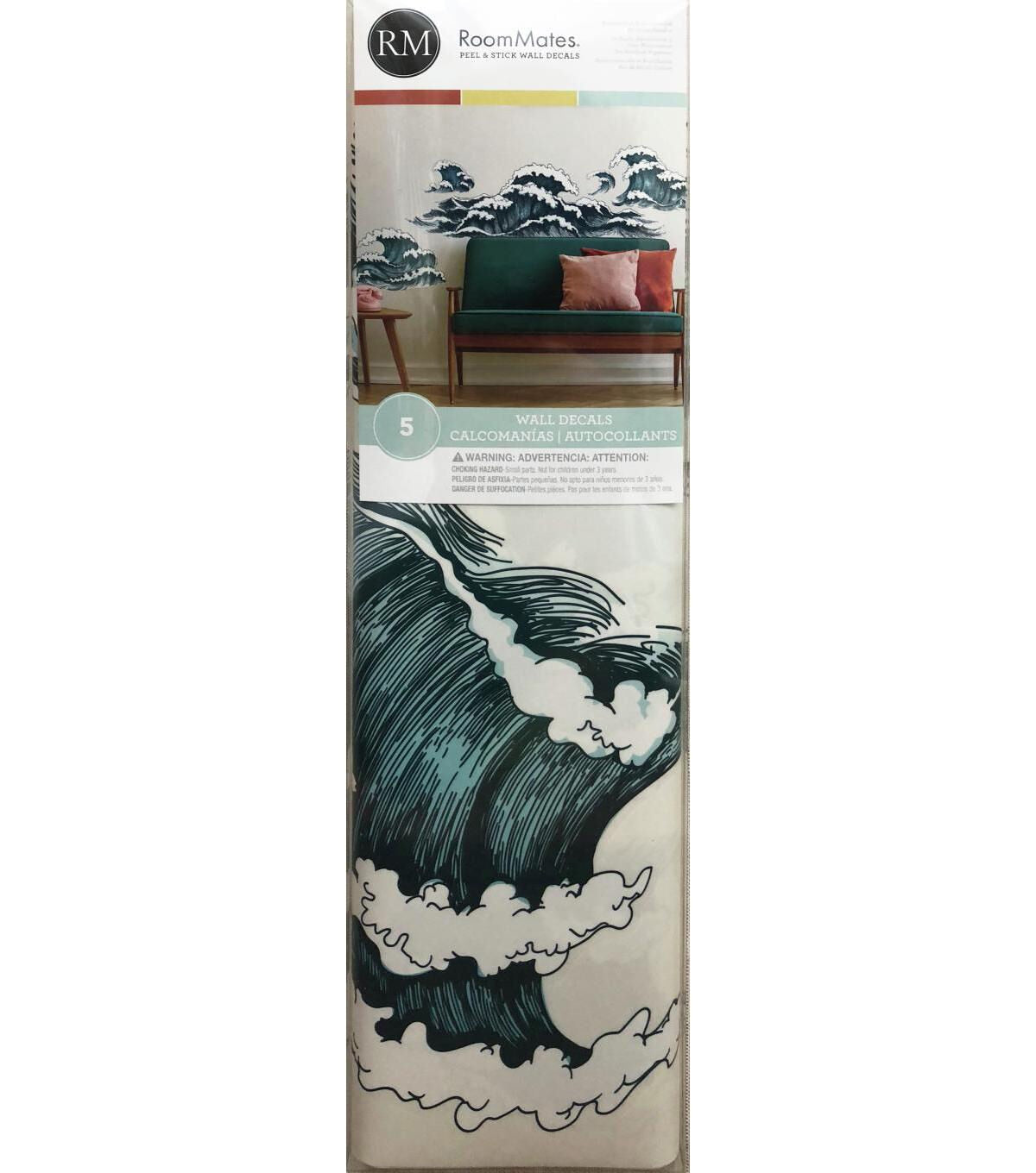 Walls instantly come to life with Great Wave Peel and Stick Giant Wall Decals by RoomMates. Complete with 5 wall decals, spread this decorative theme throughout an entire room in seconds. The application process is fast and easy. Simply peel and stick decals to any smooth, flat surface. Remove, reposition, and reuse as often as needed while keeping walls and decals completely safe. Recreate this look in your room today with RoomMates.