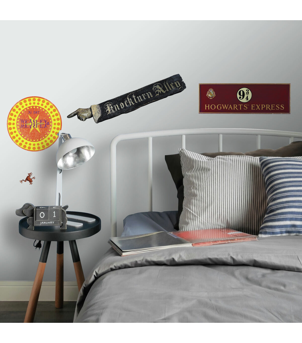 Decorate walls with Harry Potter Signs Peel And Stick Wall Decals by RoomMates. Complete with 21 decals, this wall sticker set is a fun and creative way to transform any room in seconds. To apply, simply peel and stick decals to any smooth, flat surface. Remove, reposition and reuse as often as needed. Created with high quality vinyl that's made to last, walls stay completely safe, and sticky residue is never left behind. It's fast, fun and affordable wall decor at it's best.