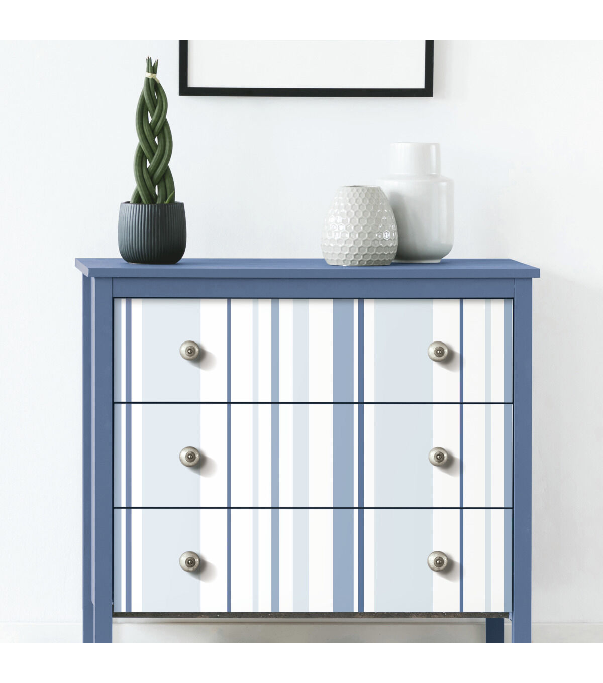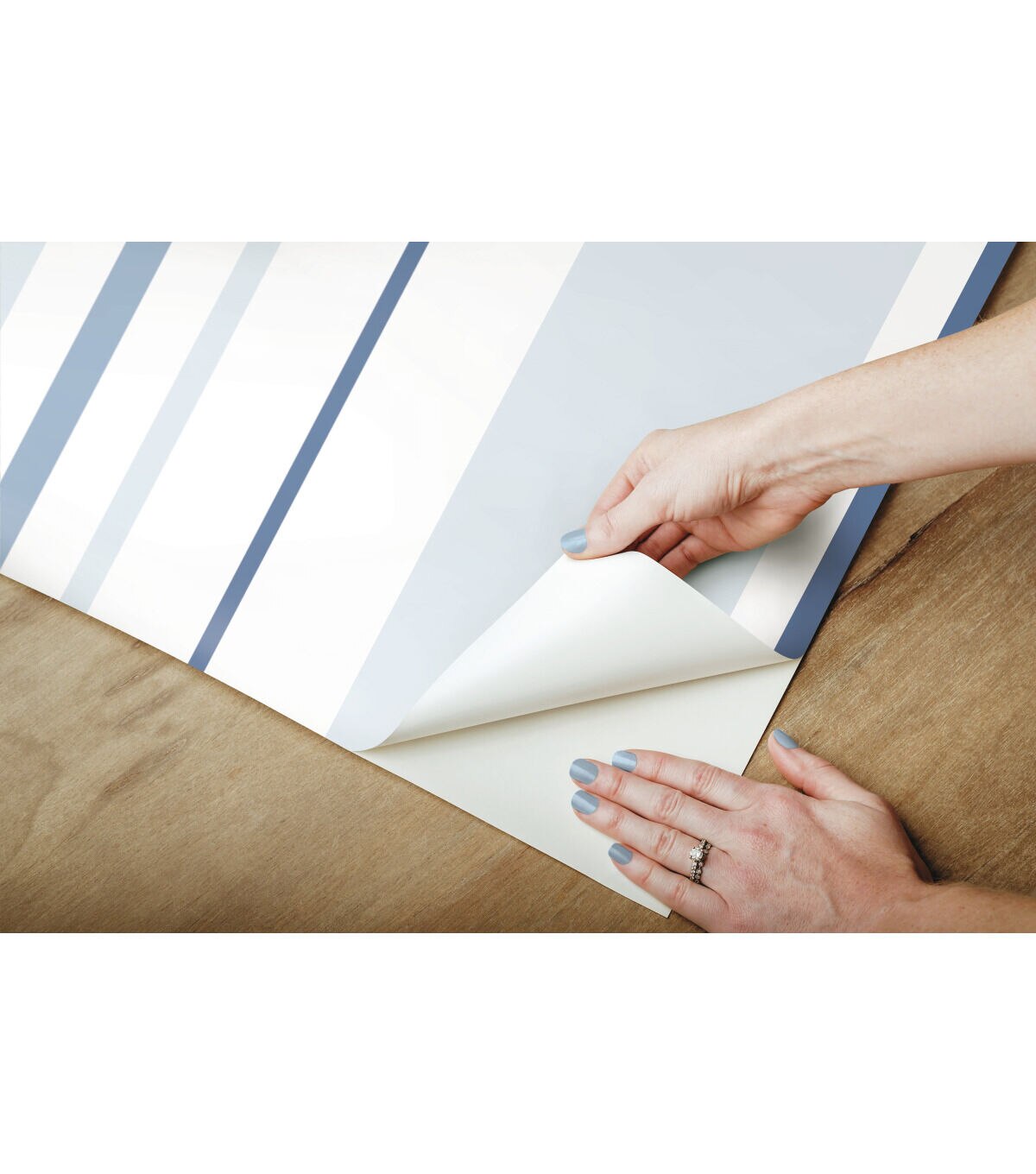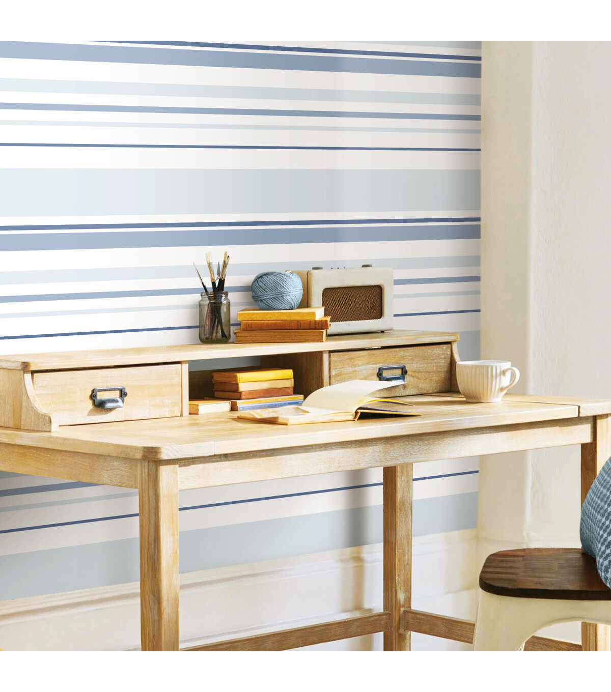 Simple yet statement making, Blue Stripes Peel and Stick Wallpaper is sure to catch the eye of everyone who enters your home. This graceful geometric pattern creates a designer look with minimal effort. Modern yet timeless, create an elegant room in minutes with our peel and stick technology. Simply peel from the backing and stick to any smooth surface of your choice. From walls to furniture and more, create a come you'll love with peel and stick wallpaper from RoomMates.
