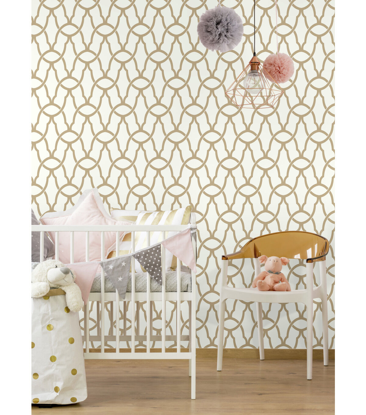 Sophisticated and chic, add instant flair to any space or decor. From walls to DIY crafts, splash this modern gold trellis pattern on any clean flat surface in minutes. Install with two easy steps - just peel and stick! Plus, it is removable making it the ultimate temporary decorating solution. Completely safe for walls, Peel and Stick Decor leaves surfaces free of sticky residue. Fast, fun and affordable