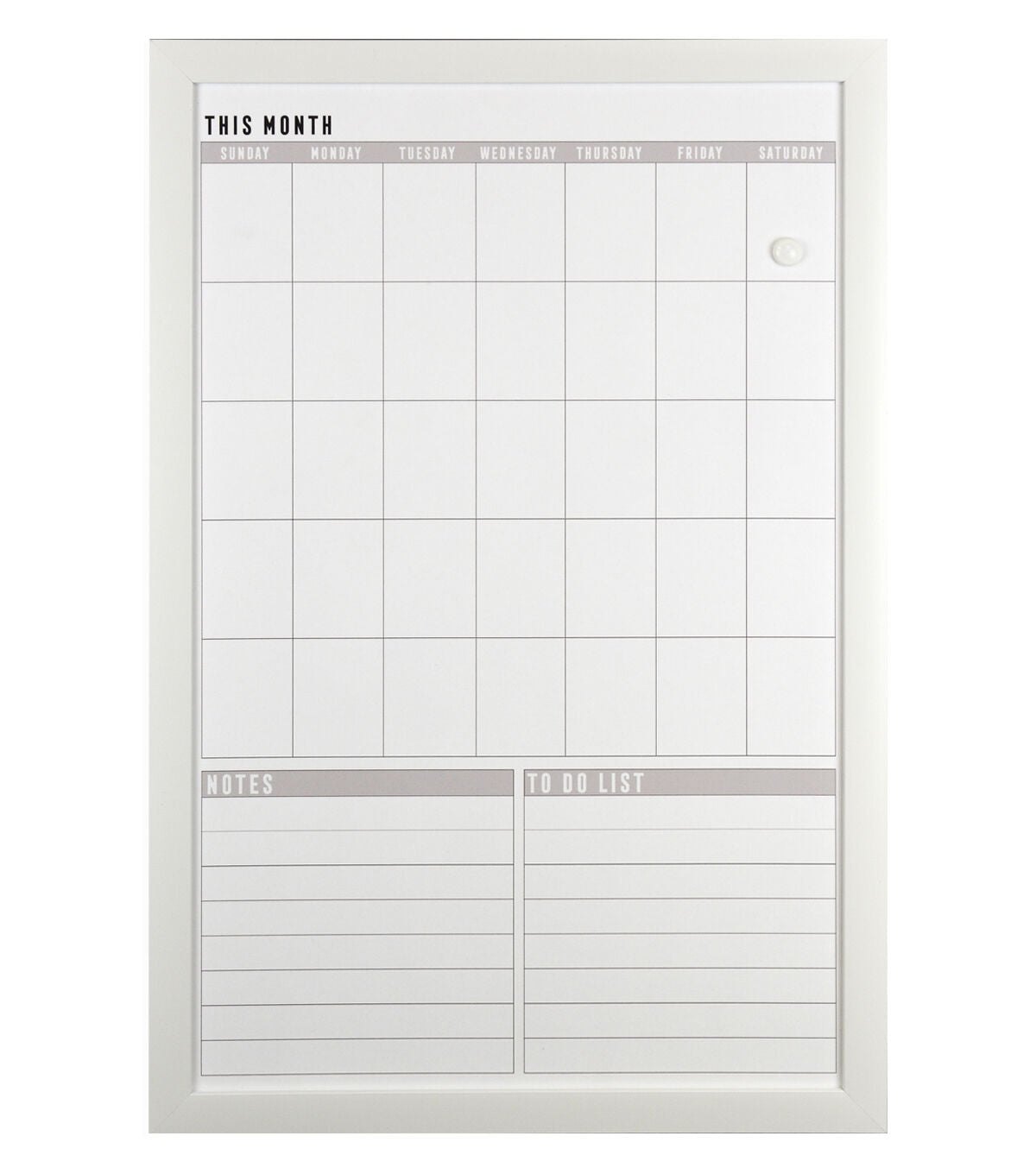 Mark important dates, pen down notes or create to-do lists using the Wipe Off Monthly Calendar Board. This wipe off board can be used month after months as you can easily wipe it clean every time you need a fresh start. Hang this monthly calendar on your living room or kitchen wall.